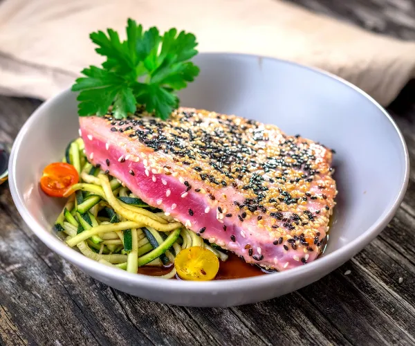 Sesame-Crusted Bluefin Tuna with Fresh Vegetables